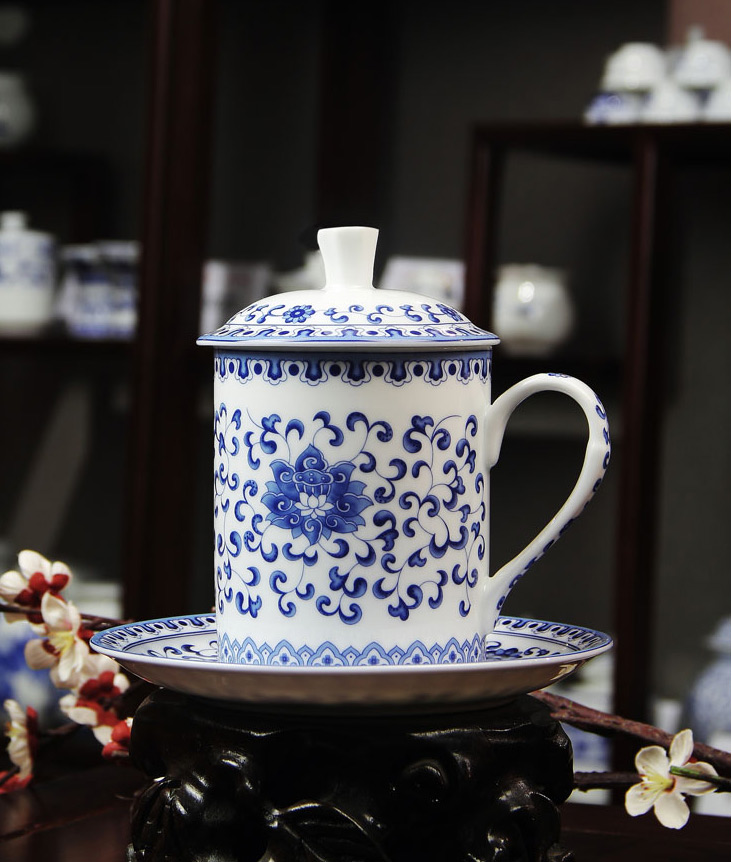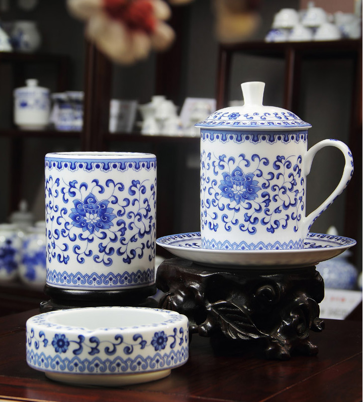 4头办公文具青花满莲