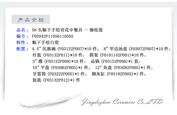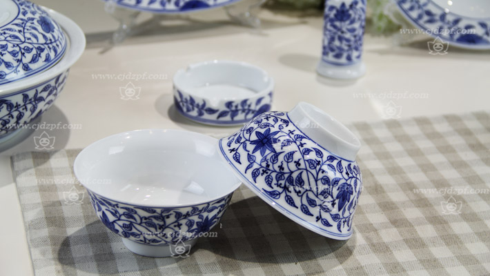 56头青花手绘缠枝莲中餐具