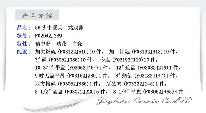 56头中餐具二龙戏珠