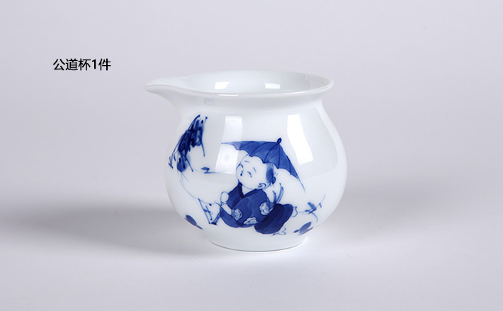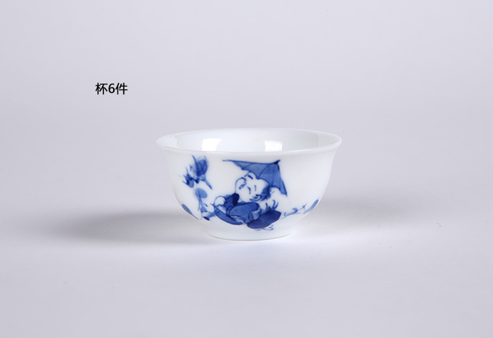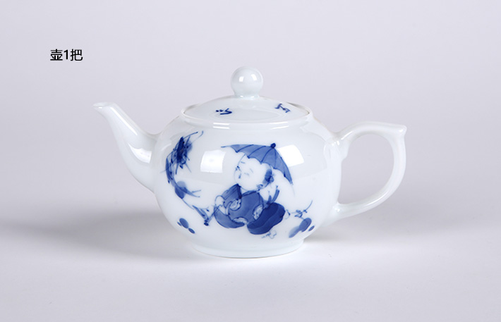 8头手绘茶具青花童趣