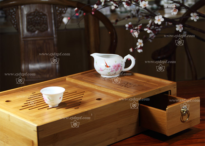 手绘功夫茶具(竹质茶海)水点桃花