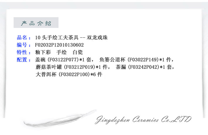 10头手绘工夫茶具双龙戏珠