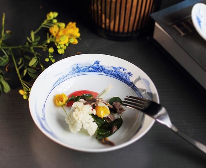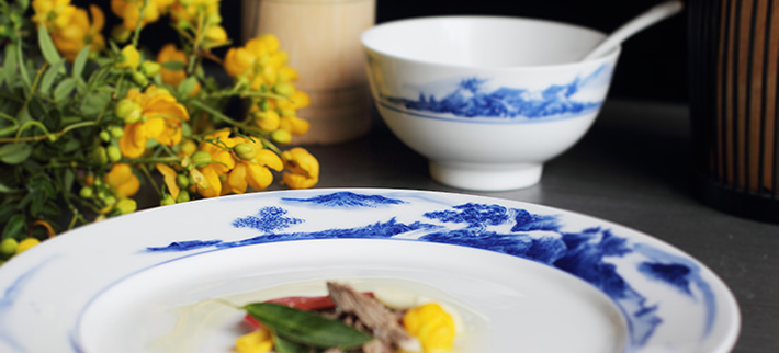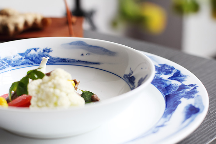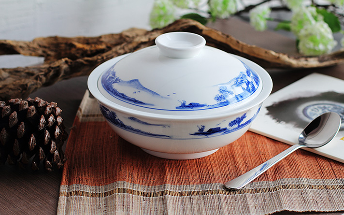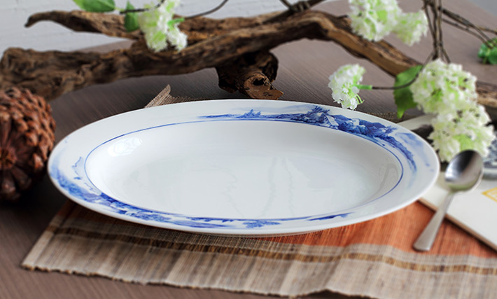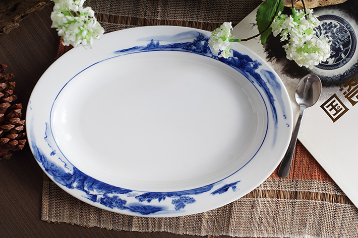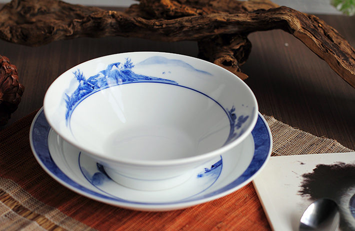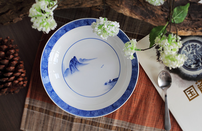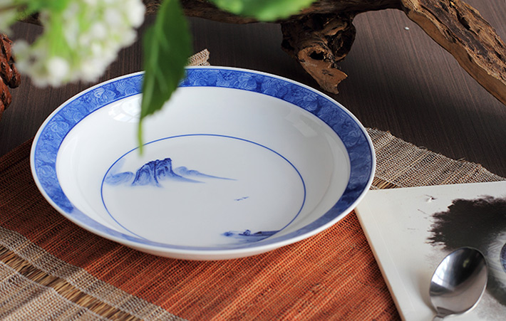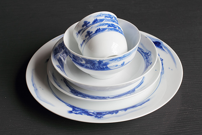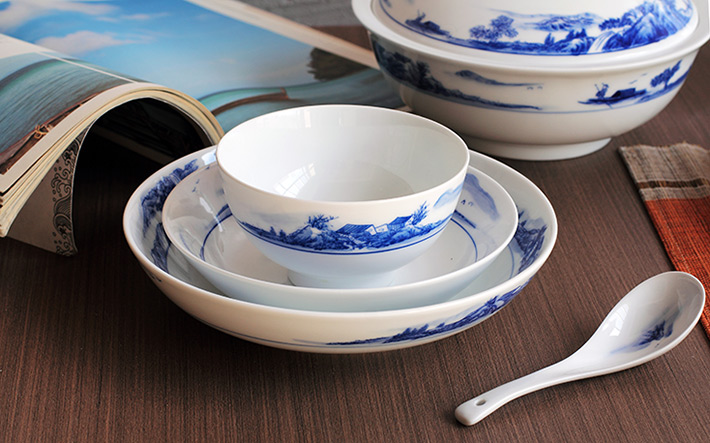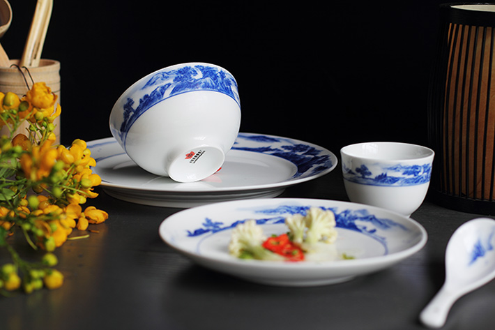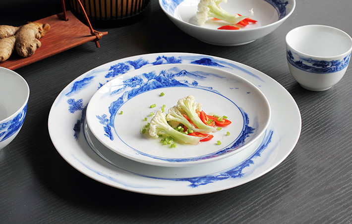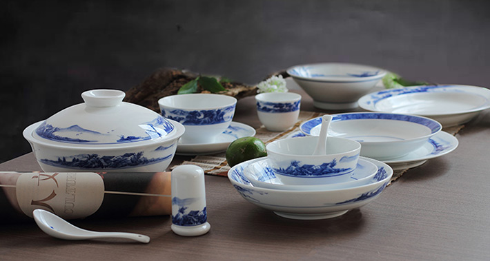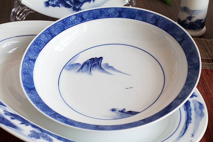 56头釉下彩中餐具山水