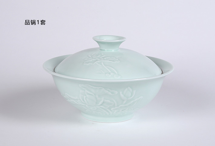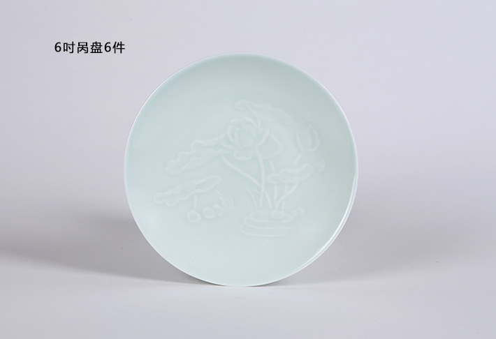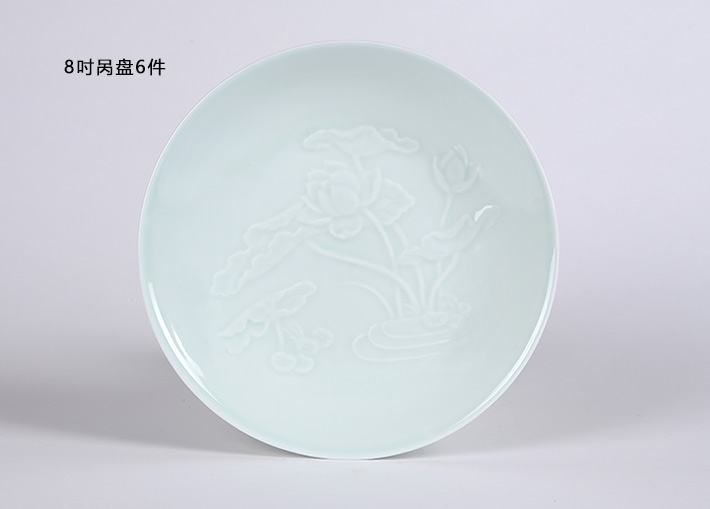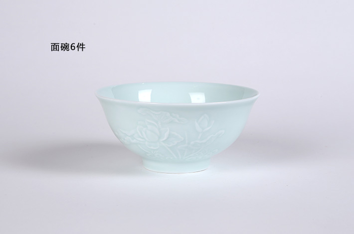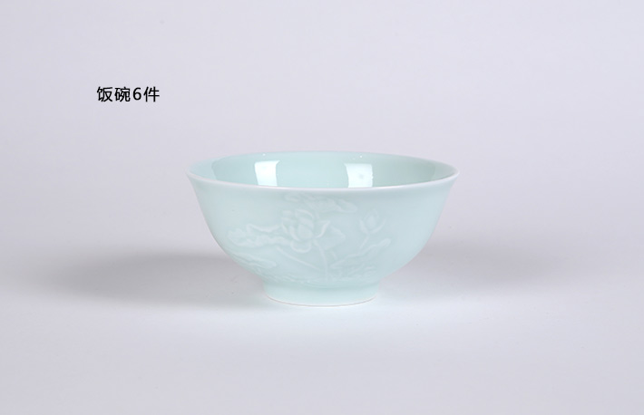 32头影青雕刻餐具荷花