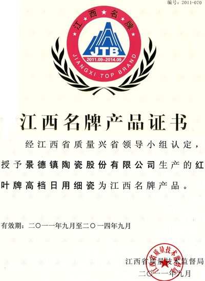 2011年10月9日在南昌召开了2011年江西名牌产品及质量管理先进企业授牌大会,“红叶”米兰体育平台官方网站荣获2011年江西名牌产品称号。