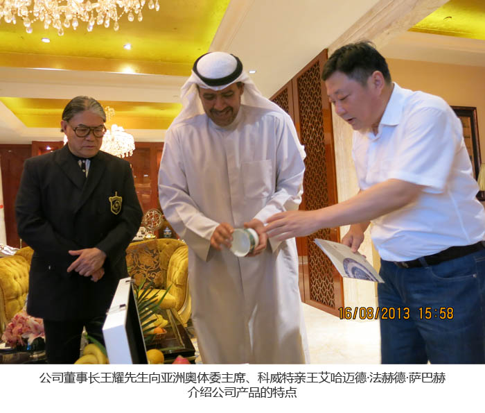 王耀在和艾哈迈德亲王交流过程中,亲王明确表示,争取在不久未来专程前往景德镇进行实地的考察,探究这个千年瓷都的秘密;期望米兰体育平台官方网站股份公司未来可以与亚奥理事会取得合作,专门为其设计一系列米兰体育平台官方网站;希望不久的将来,可以帮助米兰体育平台官方网站股份公司乃至景德镇的米兰体育平台官方网站进驻科威特市场,向中东乃至全世界拓展。