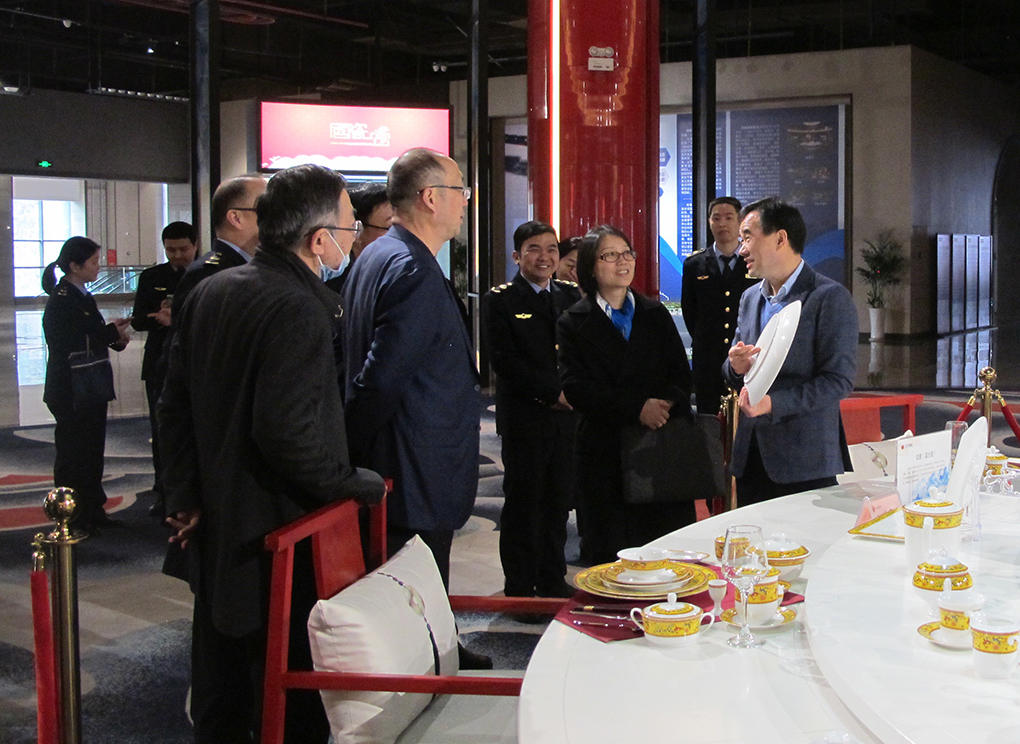在国瓷馆参观考察期间,周敏建向调研组一行简要介绍了集团公司发展历程。大家边走边看,不时驻足拿起产品仔细品鉴或拍照。周敏建在介绍“国瓷红叶”产品特色时详细讲解了米兰体育平台官方网站生产工艺,讲述了一套套有关“国瓷”的故事。