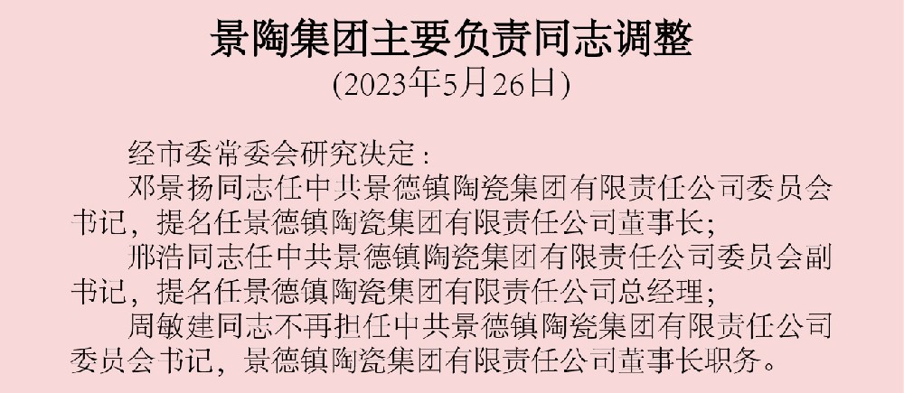 景陶集团主要负责同志调整