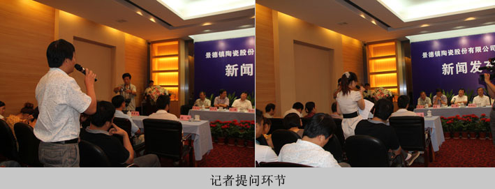 2011年8月8日上午10点28分,景德镇米兰体育平台官方网站股份有限公司在公司多功能厅举办国瓷馆落成新闻发布会。市人大副主任、市委秘书长余振泰,市国资委、市旅游局、市瓷局等60余位领导、省、市15家新闻媒体及公司有关负责人出席了新闻发布会。
