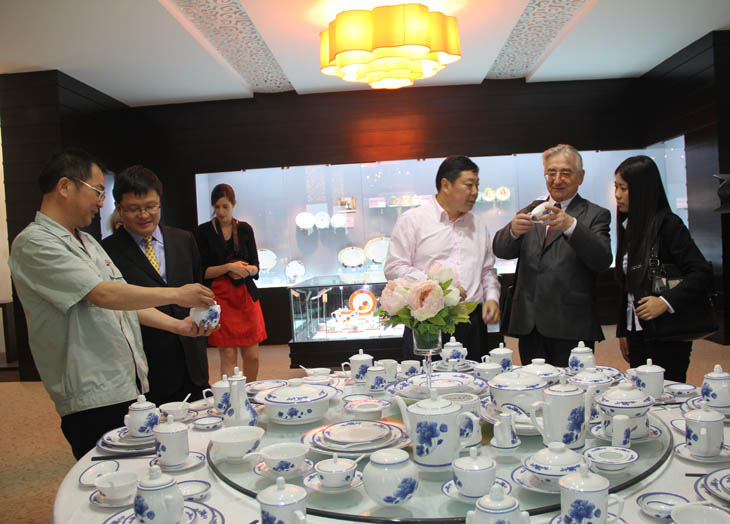 法国利摩日市副市长贝纳德·埃本斯坦在公司办公室座谈