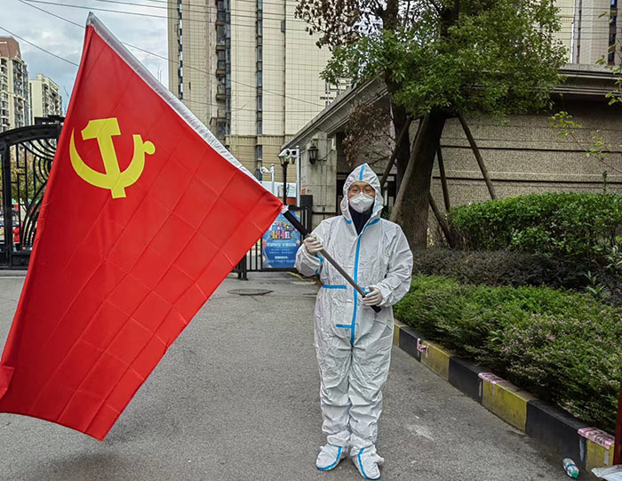 组织委员邵建华,自疫情发生以来,每天都值守在疫情一线,天没亮他就到核酸检测岗去维持秩序,核酸检测完他又去卡口执勤。不仅如此,因小区封控,环卫车进不来,他每天用自己的双手将居民的生活垃圾一桶一桶的运出,不怕脏,不怕累,只为还原小区一个干净卫生整洁的环境。