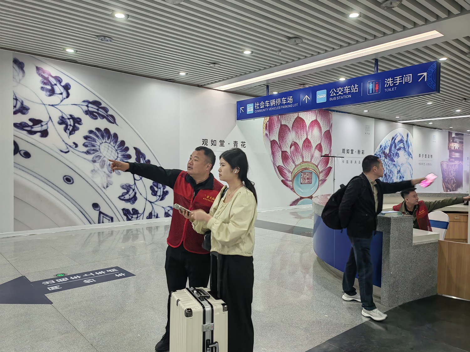 4月30日,五一假期前夕,景陶集团组织70多名党员志愿者参加市“窑火红”党员志愿服务活动。他们身穿红马甲,忙碌穿梭在景德镇北站南广场,北广场和罗家飞机场的旅客中,为来景游客指引路线,提行李,推介美食美景美宿,引导车辆有序停放等,送上热忱暖心的服务,流动的红马甲成为一道靓丽的“风景线"。