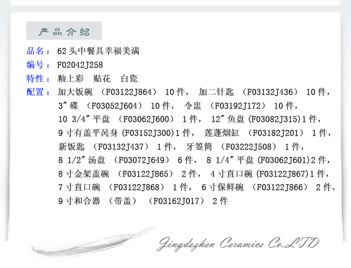 62头中餐具幸福美满